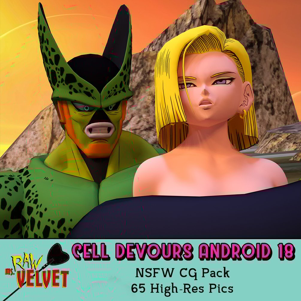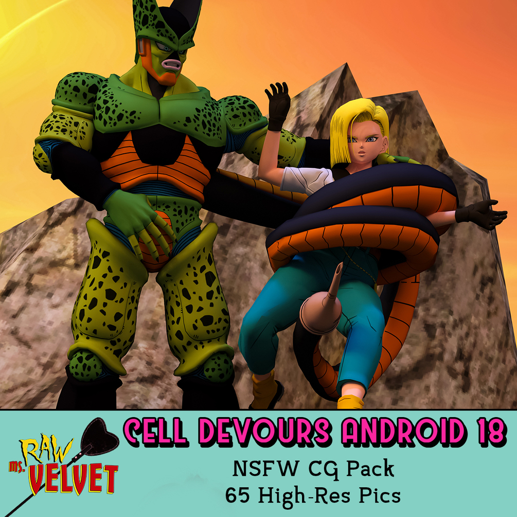 Android 18 thinks she's defeated all her enemies, but she misses the growing power behind her. Cell appears, eager to absorb Android 18's power for himself. He coils his tail around the android, penetrating her in multiple ways to best feel her power. Finally, he absorbs her completely, swallowing her whole!