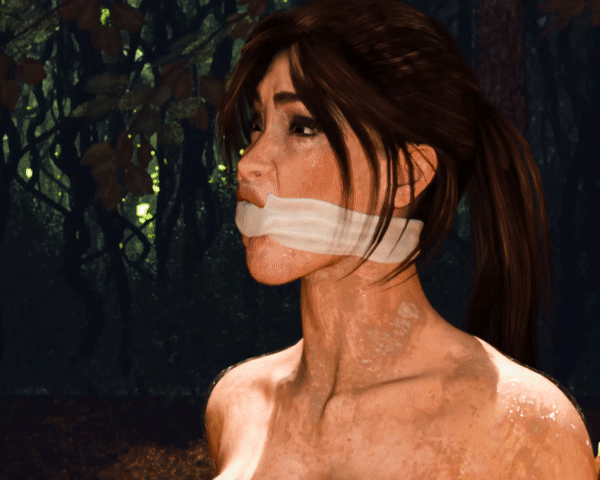 Lara Croft finds herself bound, gagged, and sinking into a pool of quicksand.